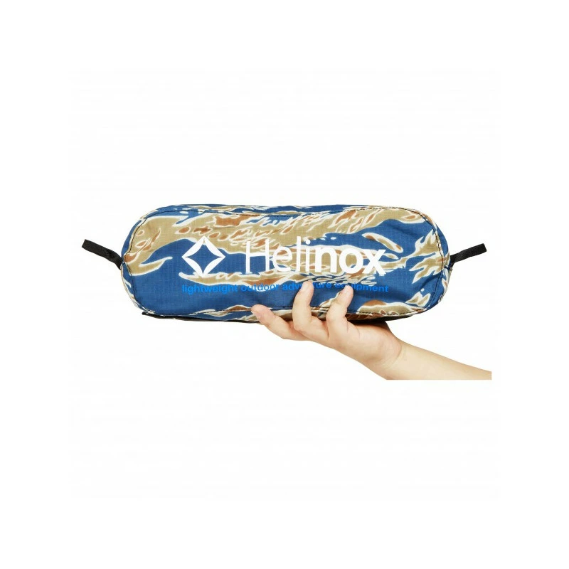 Chaise Helinox pliable et peu encombrante pour une assise confortable en camping sauvage.