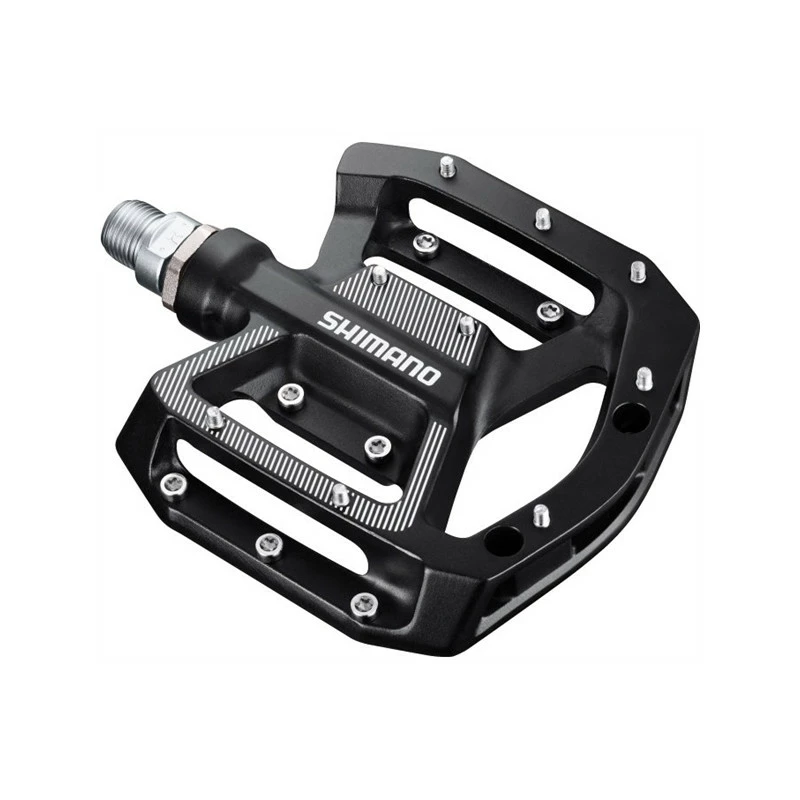 Pédales à plateforme utilisée habituellement en VTT de descente ou Freeride et en BMX, donc ultra-solides. Corps solide en aluminium, axe en acier CroMo, roulements étanches et picots de maintient du pied amovibles et ajustables en longueur.