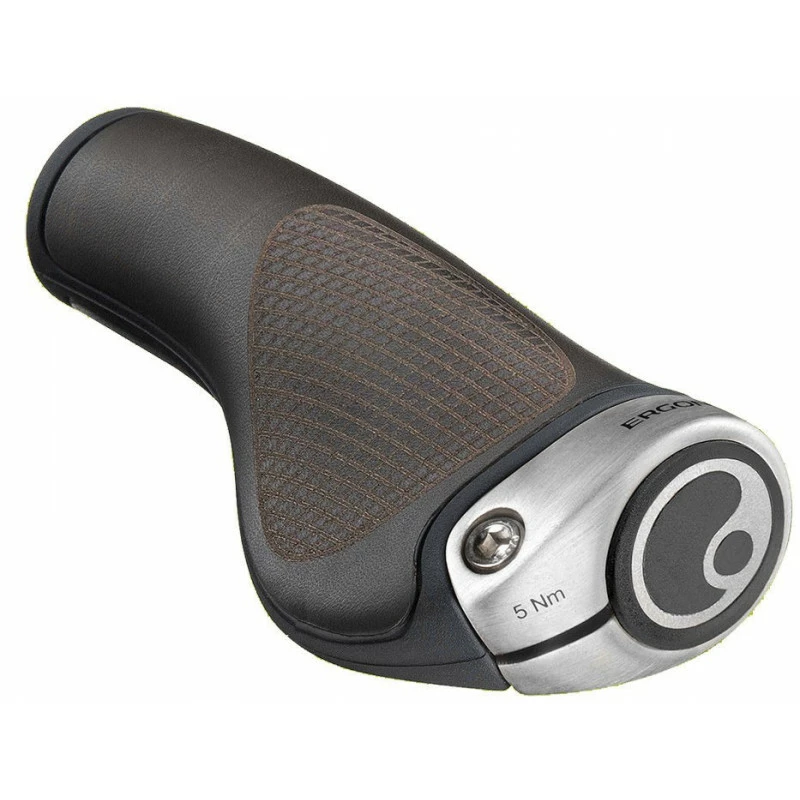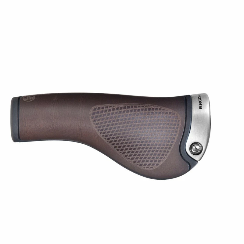Poignées ergonomiques à surface de cuir surmoulé sur noyau caoutchouc, certifiées hypoallergéniques.