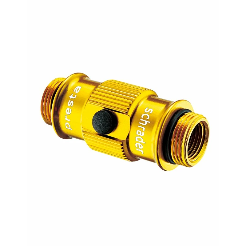 Tube principal et principaux composants en métal, tuyau flexible souple dont la tête s’adapte aux valves Schrader et Presta par simple retournement.