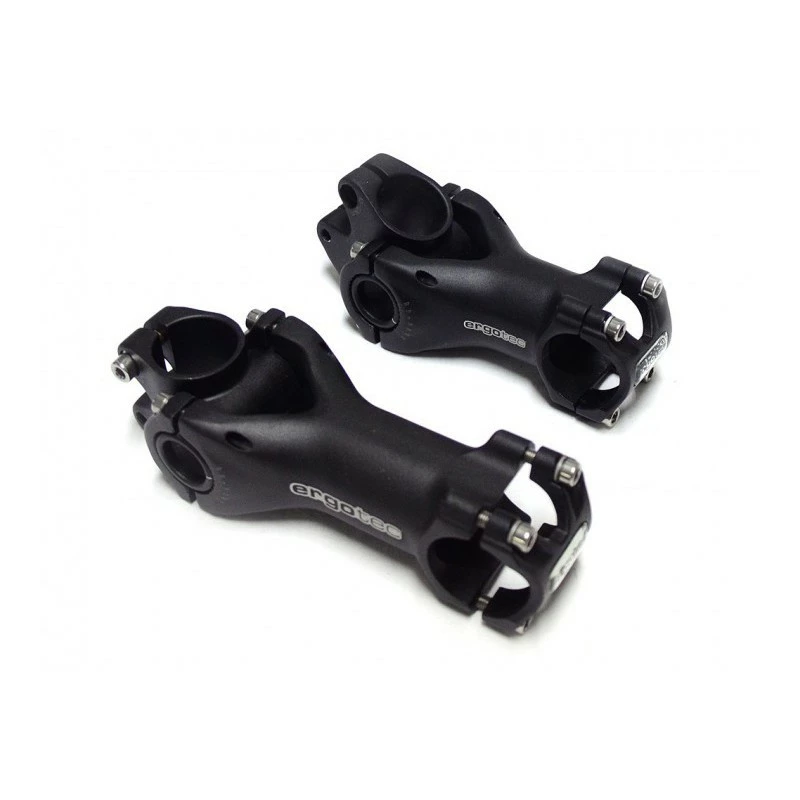 Potence réglable pour tubes de fourche de 1 1/8″ et guidons 25,4 mm. Plage de réglage entre -20 et +40 degrés.