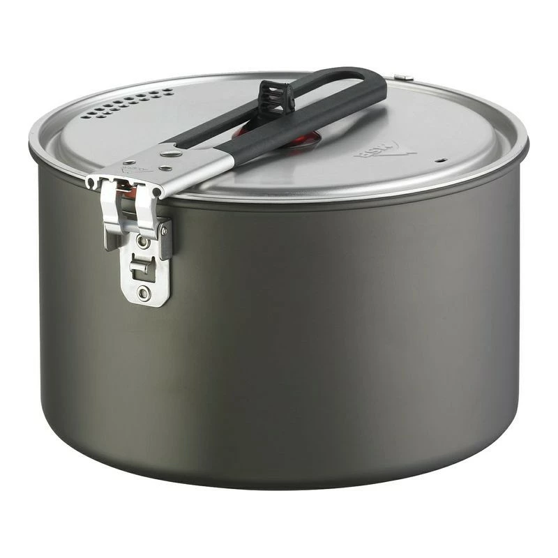 Comporte une casserole à revêtement anti-adhésif, une autre en aluminium anodisé dur, un couvercle passoire, deux assiettes DeepDish, 2 tasses isothermes et une poignée modulaire amovible Talon.