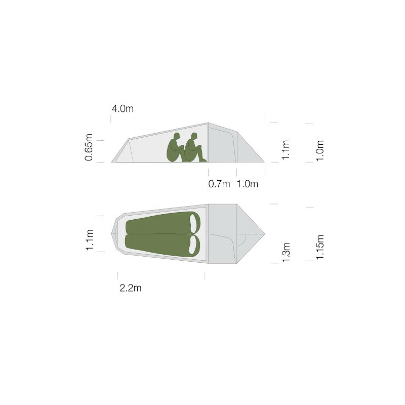 Matériel: Nylon Ripstop 15D et 40D (tapis de sol), 10’000mm colonne d’eau